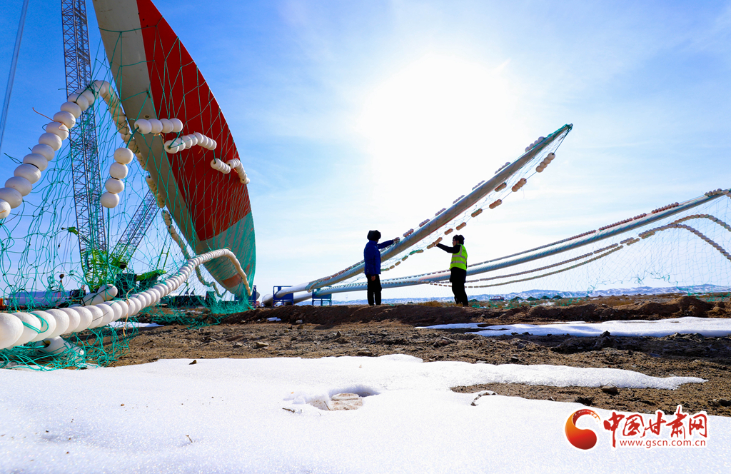 2月21日,張掖市臨澤縣板橋北灘20萬千瓦光伏發(fā)電項目建設現(xiàn)場,工作人員正在進行發(fā)電前的設備調試。