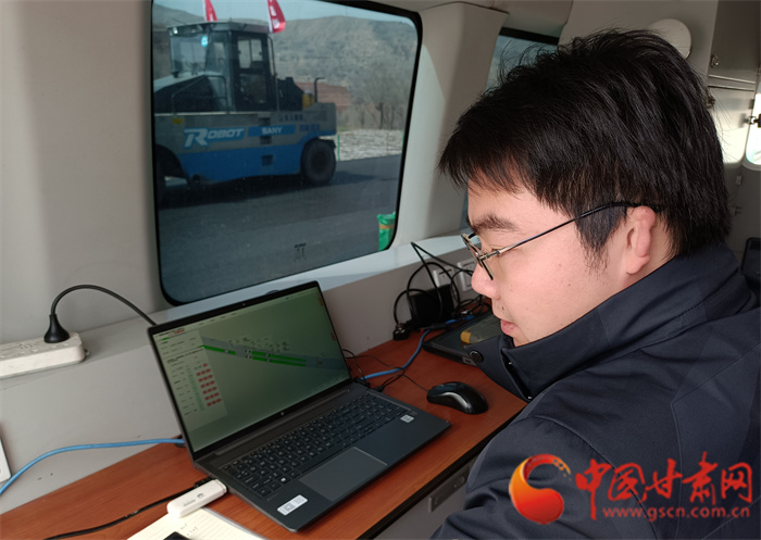 中國甘肅網(wǎng)4月6日訊(本網(wǎng)記者 宋芳科 實習(xí)生 王文博)“駕駛員可以休息一下,下面由無人駕駛集群智能化攤鋪路面。”4月6日上午,甘肅路橋安臨路面二標項目瀝青路面鋪設(shè)現(xiàn)場,無人駕駛的鋪路機組成集群駛?cè)胧┕がF(xiàn)場,在無駕駛員操作的情況下智能前行,實現(xiàn)公路鋪設(shè)碾壓一體化成型,而指揮這些龐大工程車輛的僅僅是一名技術(shù)人員和一臺筆記本電腦,真正實現(xiàn)了路面鋪設(shè)智控化。