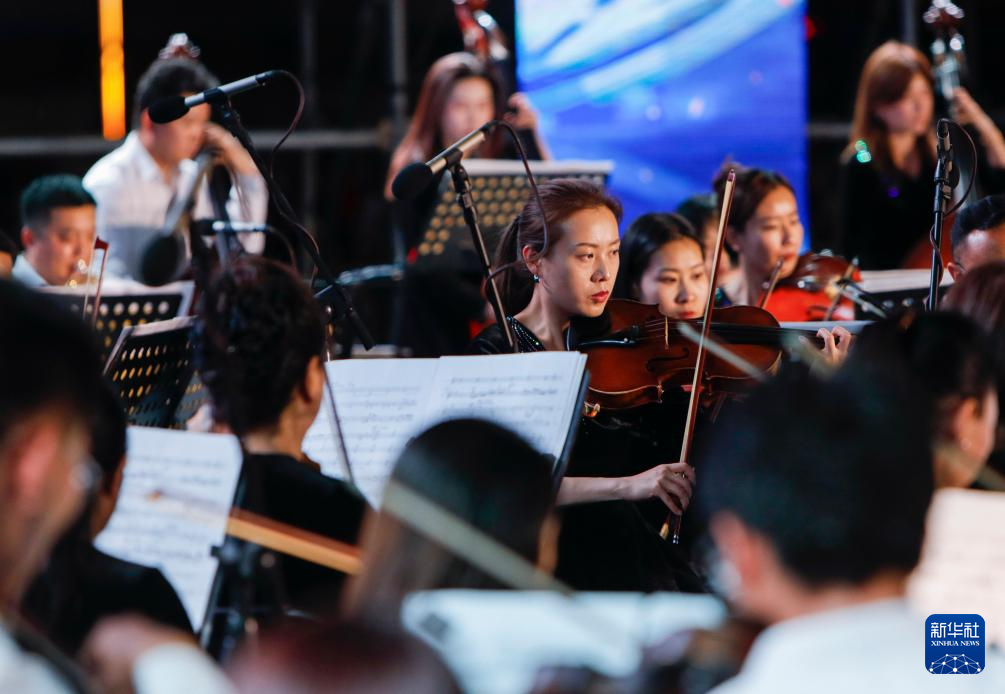 7月31日,來(lái)自甘肅省歌劇院、甘肅交響樂(lè)團(tuán)的演奏者們?cè)诒硌莨?jié)目。新華社記者 方欣 攝