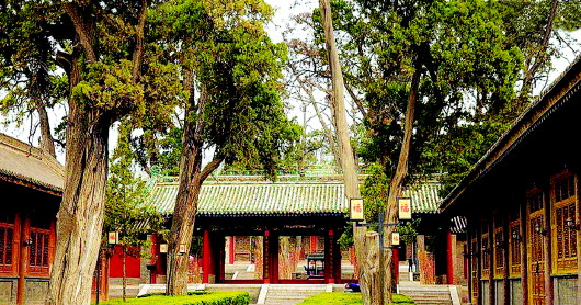 許多游客初來伏羲廟,對(duì)這里高大參天的千年古樹尤為喜愛。古柏蒼槐,叢郁繁茂,密嚴(yán)森列,為隴上之奇觀。宮門東的“龍槐”,為唐代所植。歷經(jīng)千年風(fēng)雨滄桑,樹干已空朽,而殘軀斷皮上又長(zhǎng)出新枝,老樹換新顏,生機(jī)勃勃。