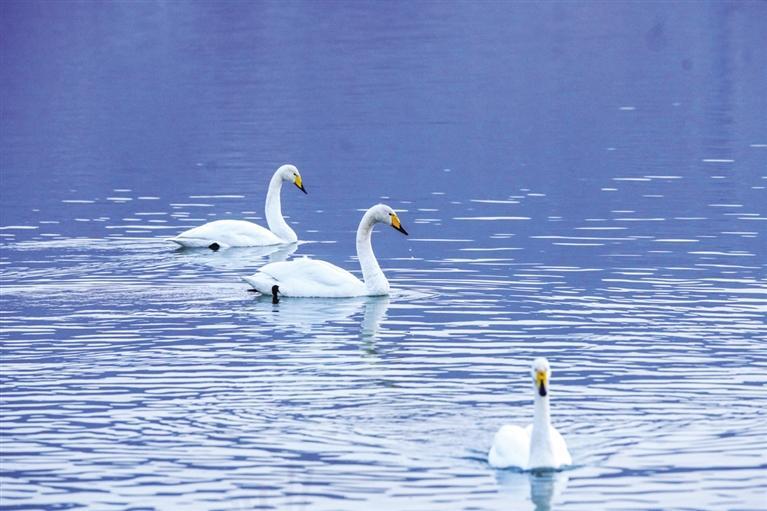 “生態(tài)好不好,鳥兒是晴雨表。”近日,西固區(qū)達川鎮(zhèn)三河口迎來了今年首批越冬大天鵝,吸引了眾多市民游客前往觀賞。記者從蘭州市林業(yè)局了解到,目前黃河蘭州段濕地分布和棲息的濕地鳥類約有68種,其中,國家I級重點保護鳥類3種(黑嘴鷗、黑鸛、白尾海雕),國家II級保護鳥類5種(大天鵝、鴛鴦、鹮嘴鷸、白腰杓鷸、鶚)。鵲鴨、綠頭鴨、斑嘴鴨、普通秋沙鴨和漁鷗等優(yōu)勢越冬水鳥種群數(shù)量較大,主要棲息地分布在沿線各灘涂地,棲息地質量較高。