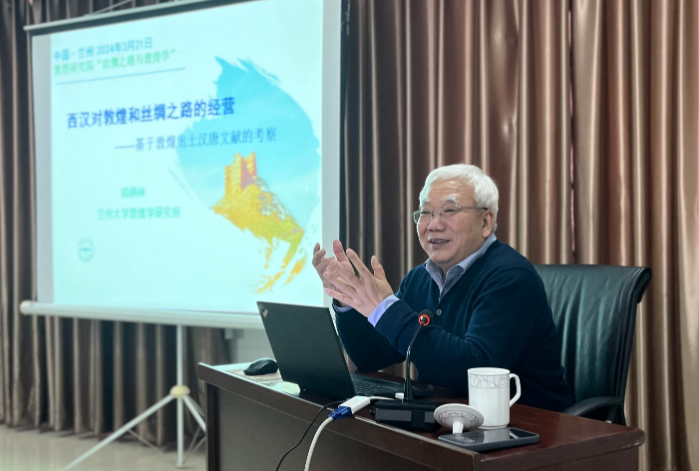 2024年3月21日下午,蘭州大學鄭炳林教授應邀在“絲綢之路與敦煌學”系列公益學術講座主講《兩漢對敦煌和絲綢之路的經營》。講座由敦煌研究院敦煌文獻研究所主辦,趙曉星研究員主持,在蘭州分院舉行。我院專家學者,蘭州大學、西北師范大學、西北民族大學師生,及敦煌學愛好者50余人現場參加了此次學術活動。