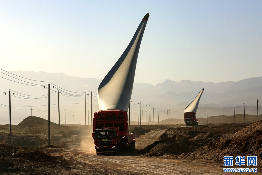 近日,在甘肅省張掖市甘州區(qū)平山湖20千瓦風(fēng)電施工現(xiàn)場(chǎng),工人們緊張有序地進(jìn)行風(fēng)電設(shè)備安裝工作。新華網(wǎng)發(fā)(陳禮 攝)