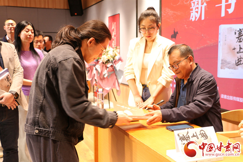 “七年來(lái),‘塞上三部曲’等6部精品力作由敦煌文藝出版社出版,這既是學(xué)輝與‘讀者’的特殊緣分,也是讀者集團(tuán)致力于培育優(yōu)質(zhì)作家資源,持續(xù)打造高質(zhì)量出版物的重要成果。”梁朝陽(yáng)在致辭中說(shuō),讀者出版集團(tuán)堅(jiān)持以精品鋪路,努力推出更多優(yōu)秀作品,為建設(shè)文化強(qiáng)省、奮力譜寫(xiě)中國(guó)式現(xiàn)代化甘肅篇章作出更大貢獻(xiàn)。