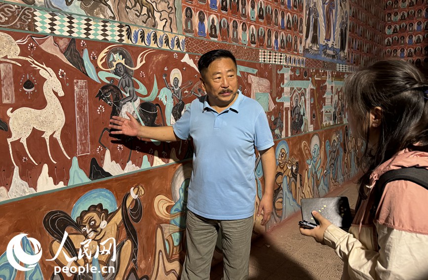 “左邊站著的是打窟人,右邊是畫工和塑匠,都是曾經(jīng)鑄就莫高窟輝煌的工種。”說著話,尤路平手里的活一刻也沒耽擱。