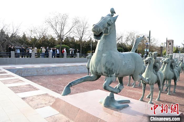 2024年4月17日,游客在中國旅游標志“馬踏飛燕”出土地雷臺漢墓內(nèi)參觀。九美旦增 攝