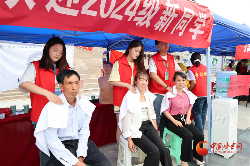近水樓臺(tái)先得月,甘肅中醫(yī)藥大學(xué)校園社團(tuán)依托中醫(yī)藥專業(yè)優(yōu)勢(shì),在迎新點(diǎn)開設(shè)推拿按摩志愿服務(wù),以專業(yè)手法解決新生和家長(zhǎng)的旅途疲勞。