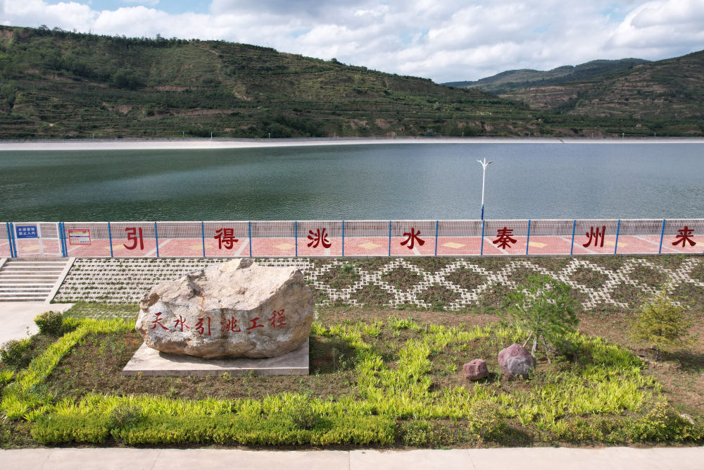 這是近日在天水市秦州區(qū)拍攝的天水市城區(qū)引洮供水工程楊家灣調(diào)蓄水池(無人機(jī)照片)。新華社記者范培珅攝