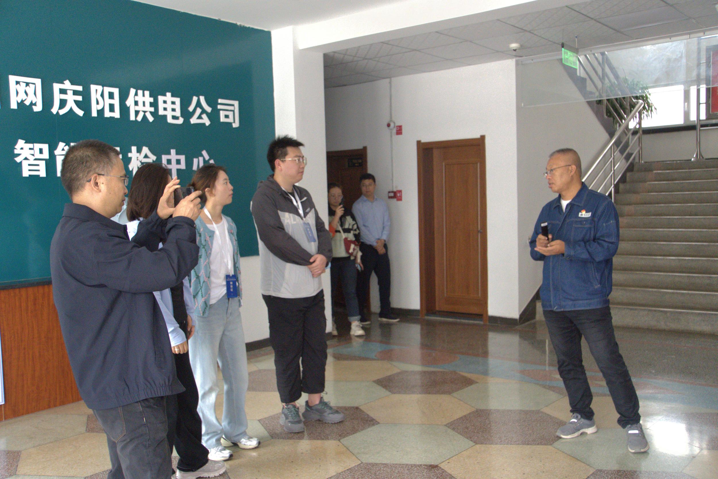 工作人員為采訪團(tuán)介紹國(guó)網(wǎng)慶陽(yáng)供電公司智能運(yùn)檢中心概況