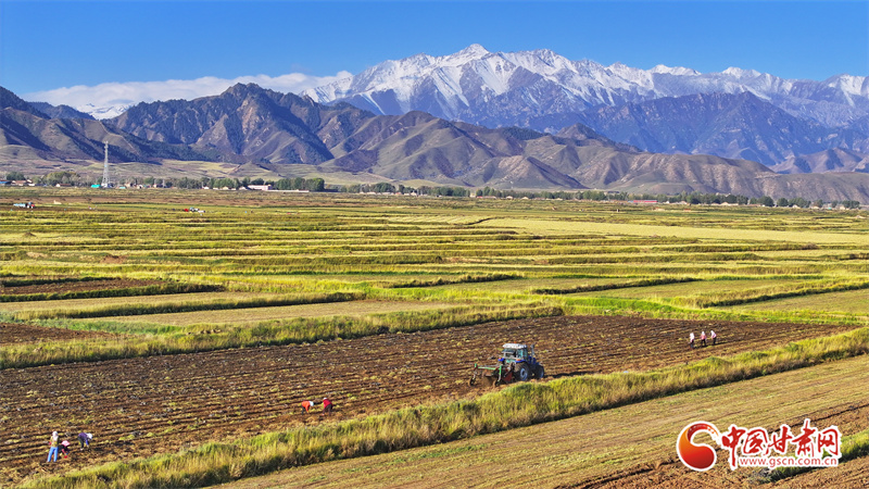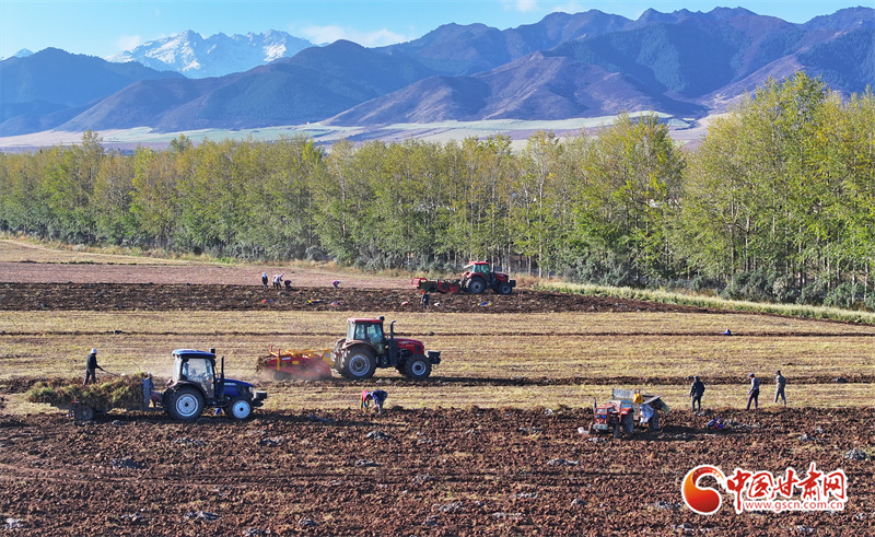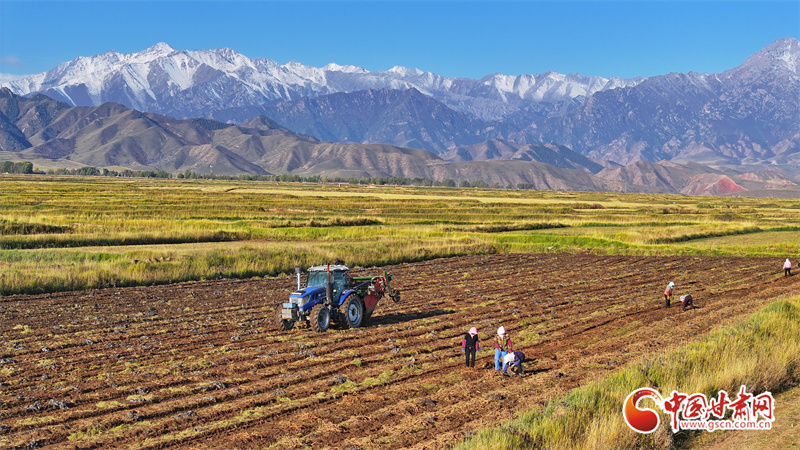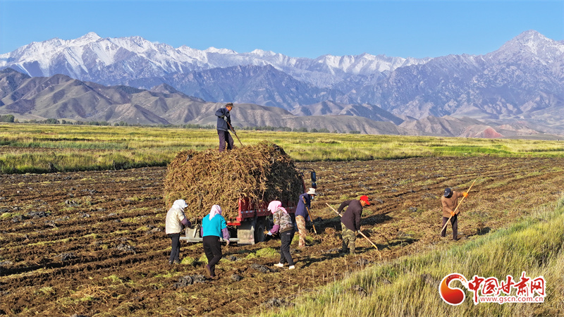 10月7日,位于祁連山腳下的張掖市民樂(lè)縣南豐鎮(zhèn)張連莊村的千畝黃芪種植基地,藥農(nóng)們忙著采收黃芪,田間地頭一派豐收的繁忙景象。