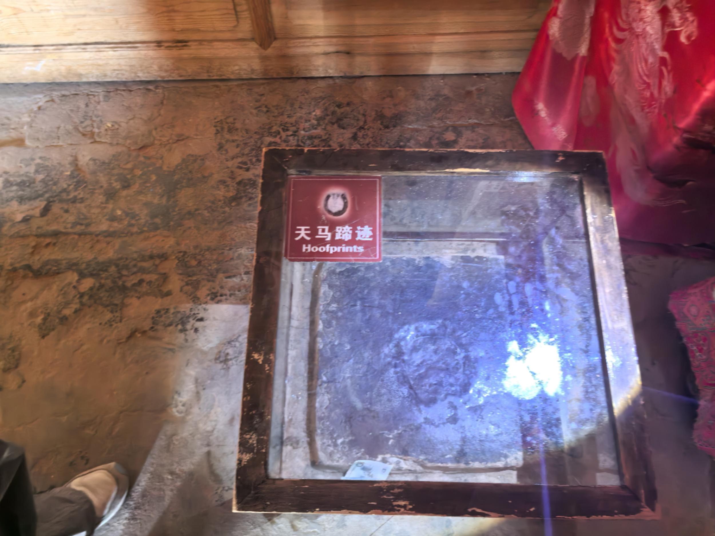 山頂一石窟內(nèi)留有深深的馬蹄足跡,傳說是天馬下凡在此飲水時(shí)。一馬蹄印落在這里的一塊巖石上,寺院由此而得名。如今,這塊蹄印石被保存在馬王殿內(nèi)。