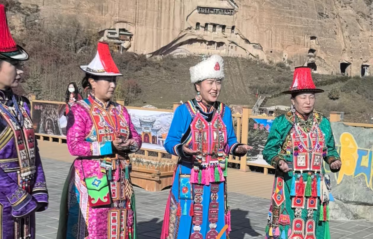 10月17日,探訪第四站,頂端新聞?dòng)浾邅淼綇堃词校挥谄钸B雪山腳下的馬蹄寺石窟群,探訪這座將棧道鑲嵌在山體之內(nèi)的石窟,在肅南感受裕固族的民俗風(fēng)情。