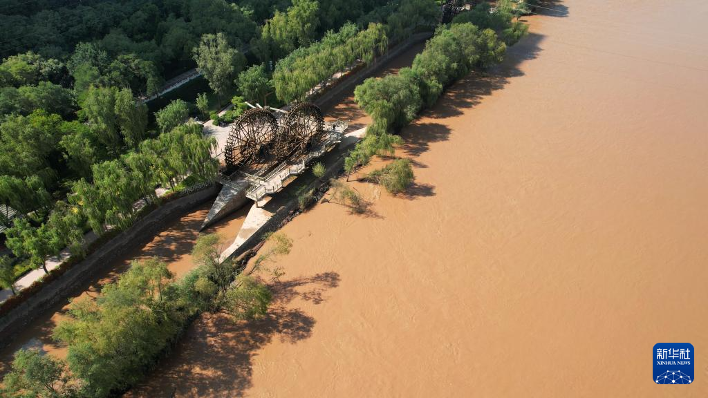 這是位于蘭州市城關區(qū)的蘭州水車博覽園內的水車(9月24日攝,無人機照片)。新華社記者陳斌攝