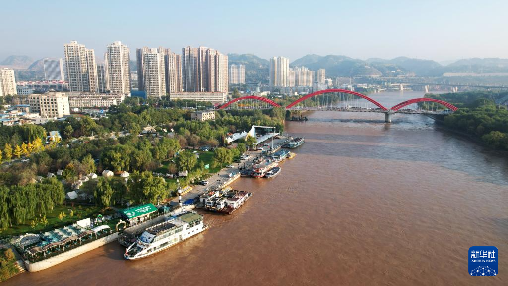 這是位于蘭州市城關區(qū)黃河北岸的鹽場堡碼頭(10月17日攝,無人機照片)。新華社記者陳斌攝