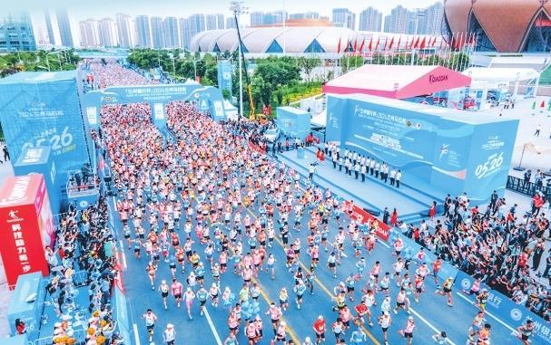 2024年5月26日7時(shí)30分,“蘭州銀行杯”2024蘭州馬拉松在蘭州奧體中心鳴槍開(kāi)賽,來(lái)自美國(guó)、德國(guó)、澳大利亞、肯尼亞、韓國(guó)等22個(gè)國(guó)家和地區(qū)以及全國(guó)各地的4萬(wàn)名選手相聚金城,用奔跑釋放生命活力。2024年是蘭州馬拉松新十年的開(kāi)端之年,首次采用“全半程混合分區(qū)”的出發(fā)機(jī)制,并對(duì)賽道進(jìn)行優(yōu)化升級(jí),將絲路文化、黃河文化融入?yún)①惙酮?jiǎng)牌的設(shè)計(jì)中,還開(kāi)展甘肅省博物館、甘肅簡(jiǎn)牘博物館、蘭州市博物館、讀者雜志社的文創(chuàng)展銷活動(dòng),邀請(qǐng)參賽選手免費(fèi)參觀9個(gè)景區(qū),為廣大選手提供更加優(yōu)質(zhì)、精彩的賽事體驗(yàn)。