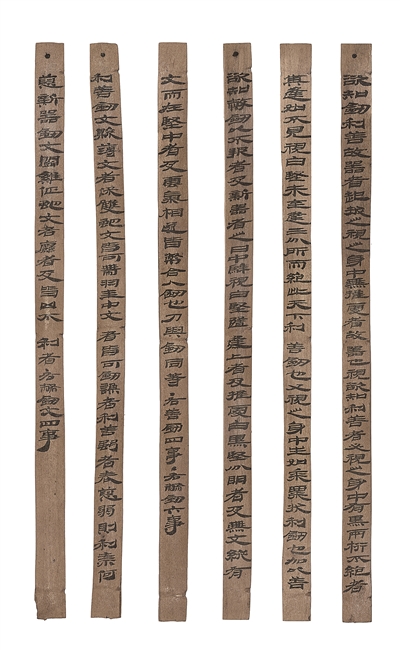 《相利善弊劍冊(cè)》(見圖)出土于甲渠候官遺址內(nèi),共6簡(jiǎn),約210字,規(guī)整隸書,墨色如新。該簡(jiǎn)提出了古人辨識(shí)寶劍的一些方法和標(biāo)準(zhǔn),對(duì)研究漢代的金屬冶煉和兵器制造具有重要意義。