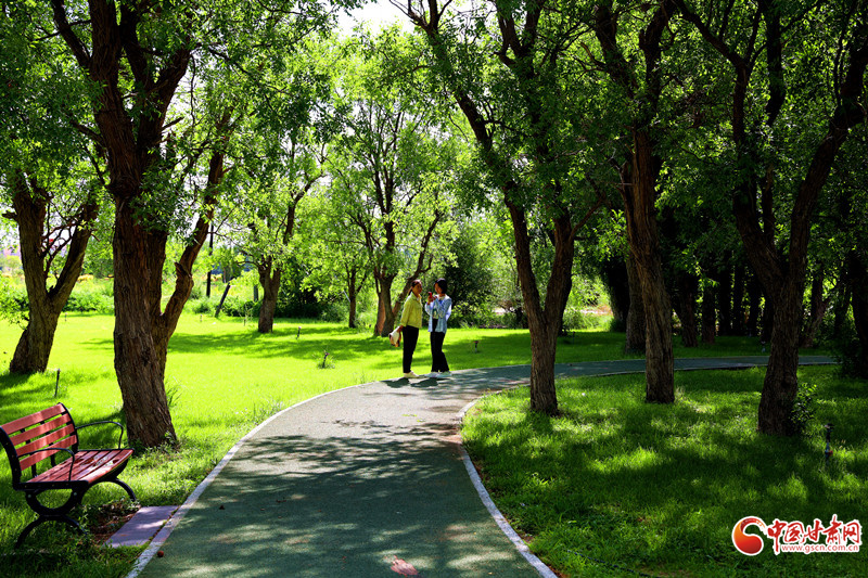 7月8日,雨后的臨澤小城初晴,天空湛藍。棗鄉(xiāng)風情園的睡蓮池畔,成為市民和游客的熱門去處。古亭倒影在平靜的池水中,與盛開的睡蓮相映成趣。市民游客坐在池邊長椅上閑聊,鍛煉的人們也沉浸在這愜意的氛圍中。