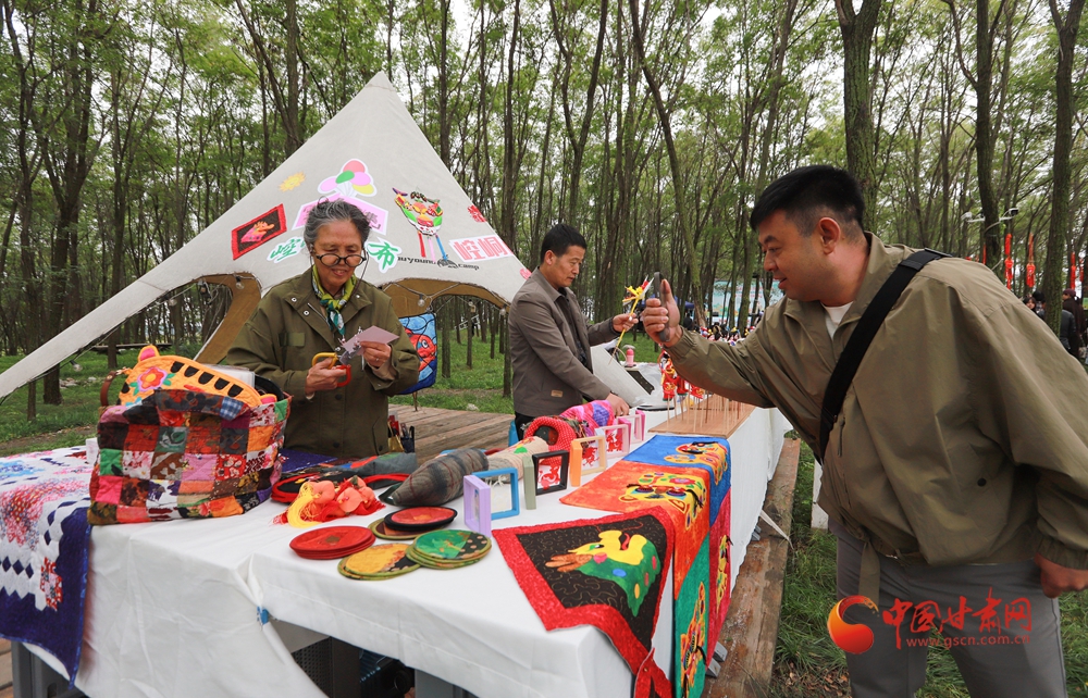 活動現(xiàn)場還設(shè)置了非遺展示區(qū)與美食品鑒區(qū),天津剪布、面塑與崆峒剪紙、泥塑等交相輝映,羊肉泡饃、釀皮、油馓子等鄉(xiāng)土美食香氣四溢,讓現(xiàn)場觀眾愛不釋手。