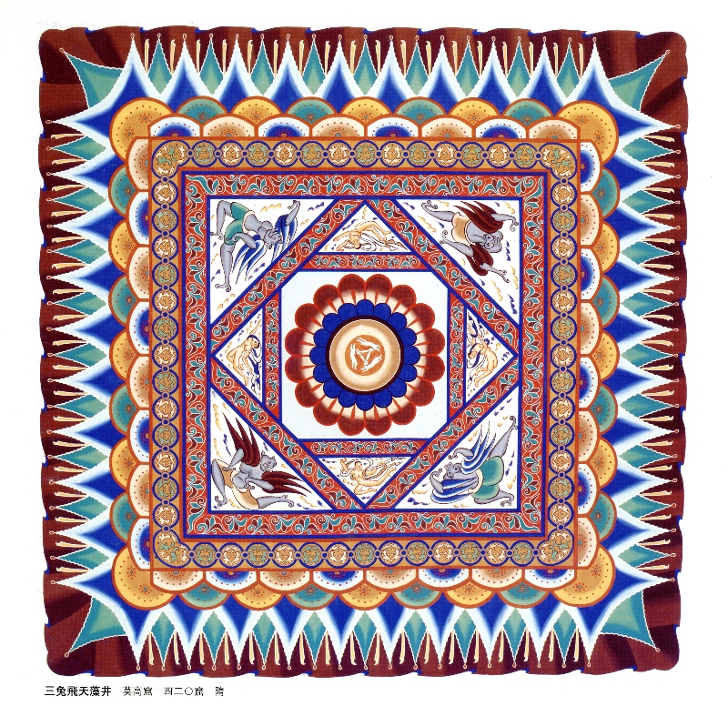 莫高窟,這座屹立于絲路要沖的藝術(shù)寶庫,承載著無數(shù)先人的智慧與夢想。其中,第407窟窟頂?shù)纳徎ㄈ迷寰?/span>是隋代具有代表性的藻井圖案之一。