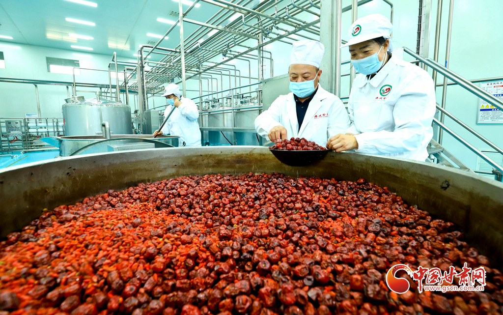 11月19日,張掖市臨澤縣一家食品企業(yè)的紅棗數(shù)字化車間里,全自動飲料生產(chǎn)線高效運(yùn)轉(zhuǎn),每日可產(chǎn)出紅棗枸杞營養(yǎng)飲料、棗夾核桃、棗片等休閑食品十余噸,供應(yīng)青海、新疆、內(nèi)蒙古、寧夏等地市場。