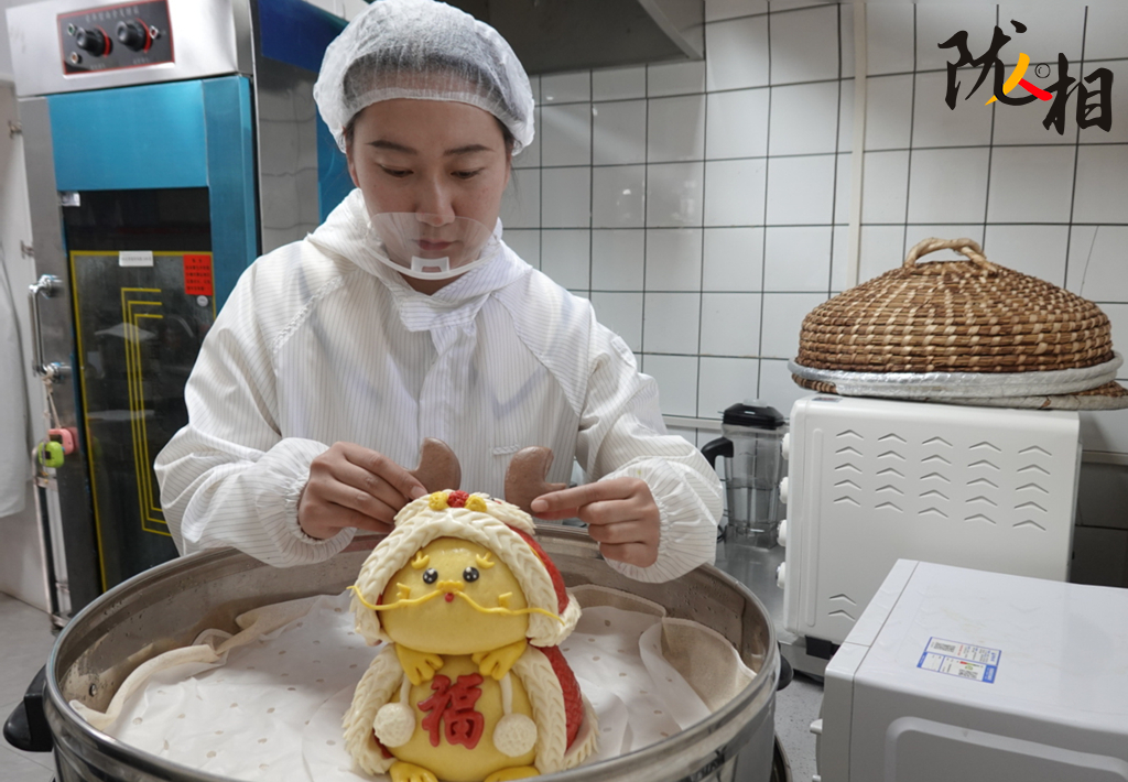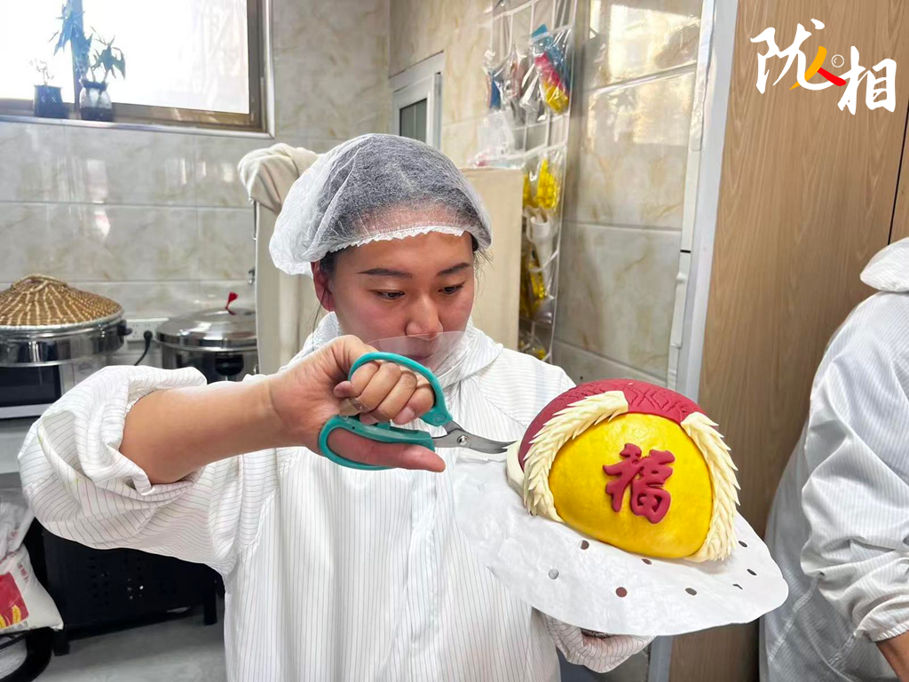 和面、上色、造型、醒發(fā)、蒸制……指尖翻飛間,一道道工序有條不紊,一只憨態(tài)可掬的生肖龍醒獅花饃便在蘇娜手中悄然成型。