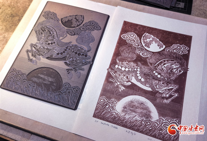 從彩陶紋樣到飛天神韻,從黃河之濱到絲路駝鈴,當傳統(tǒng)技藝遇上現(xiàn)代思維,當?shù)赜蛭幕鲎踩蛞曇?,趙寧的刀刻人生,既是個人對藝術(shù)的執(zhí)著追求,更是一位非遺傳承人對文化根脈的深情守護。正如他所說:“版畫不是冰冷的木板,而是有溫度的文化記憶。”在這方寸之間的刻板上,甘肅的故事正被重新書寫,非遺傳承也在時代語境下實現(xiàn)著創(chuàng)造性轉(zhuǎn)化,綻放出更加絢爛的光彩。