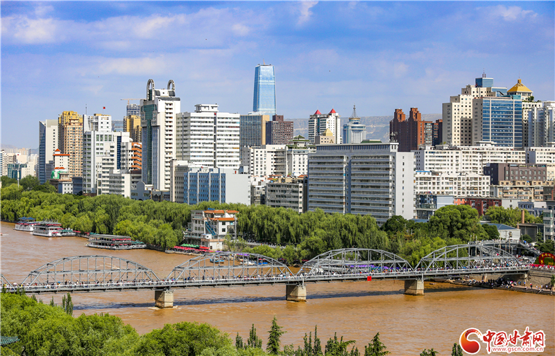 資料圖:藍天白云下的蘭州市朝氣蓬勃、欣欣向榮