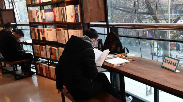 資料圖:圖為重慶書城恢復營業(yè),市民戴著口罩閱讀?!≈芤?nbsp;攝