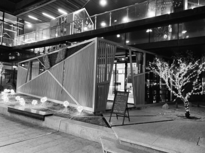 小眾書坊位于北京市南鑼鼓巷毗鄰的后圓恩寺胡同,周圍環(huán)境比較清靜。相比之下,因優(yōu)越的地理位置,雍和書庭周圍交通更為便利。沿著雍和宮橋向北走400多米,就可以看到位于地壇東門對面的雍和宮壹中心,走下樓梯,正對著一處四面落地玻璃的建筑,就是雍和書庭。在四圍的木格子和日本式枯山水裝飾下,這家玻璃書店顯得既有些隱秘又足夠開放。走在北京春天的街頭,透過雍和書庭的燈光,讓人深深感受到閱讀帶來的寧靜與溫暖。