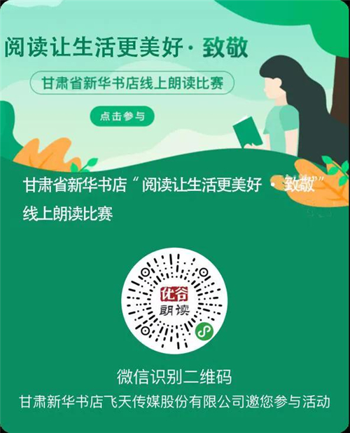 讀者進入“甘肅新華書店飛天傳媒”公眾號點擊“新華朗讀”進入小程序后,點擊頂部的“閱讀讓生活更美好?致敬”活動圖,進入活動專區(qū),即可參加朗讀。