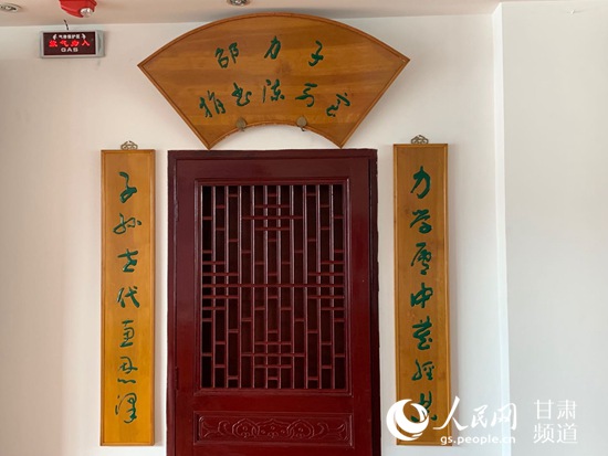 天水市圖書(shū)館坐落在藉河之濱,臨流水而擁綠樹(shù),環(huán)境清幽。那是一個(gè)雙休日,天氣晴好,記者懷著好奇、敬仰的心情,走樓梯登上了圖書(shū)館四樓。特藏室門(mén)口上方掛著“邵力子捐書(shū)陳列室”扇形木制匾額,左右兩邊掛著木制對(duì)聯(lián)“力學(xué)廬中藏經(jīng)典,子孫世代惠恩澤”,是集于右任的字。木料呈淡黃色,典雅而洋溢書(shū)香之氣。為了滿足記者的愿望,特藏室負(fù)責(zé)人李東暉犧牲了休息時(shí)間,熱情地接待我們并進(jìn)行認(rèn)真講解。