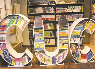 圖書被碼成中國(guó)傳媒大學(xué)的校標(biāo)形狀,這成為中傳知行書店的一處閱讀風(fēng)景。