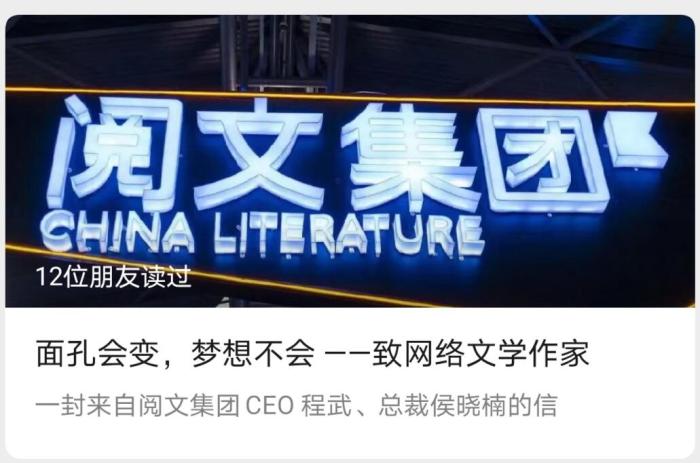 6日晚,閱文集團(tuán)就新管理層當(dāng)日與多位作家的懇談會發(fā)布文章。