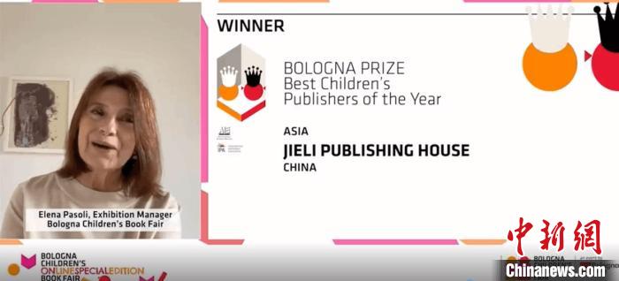 博洛尼亞童書(shū)展展覽總監(jiān)艾蓮娜?帕索里宣布2020年度最佳童書(shū)出版社大獎(jiǎng)。接力出版社供圖