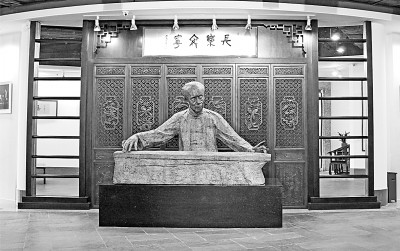 錢仲聯(lián)先生是學者,以研究古代詩詞著稱,尤其清詩研究,是中國最高權(quán)威。錢先生研究古代文學,不僅能夠旁征博引,發(fā)人所未發(fā),更重要的是所有古代文學形式詩、詞、駢體文,錢先生都能如同古人一樣進行創(chuàng)作。錢先生是1981年國家首批博導,學界不僅重視他的學術成就,同時崇敬他的詩人身份。王元化稱錢先生為“一代詩豪”,深得學界贊同。那么,一位每天沉浸在古典世界的學者,應該怎樣雕塑呢?紀峰創(chuàng)作的錢仲聯(lián)先生銅像是座半身像,我以為可以稱作“思想者錢仲聯(lián)”。錢先生緊閉雙唇,雙目微微下視,凝視不動。寧靜的表情,頭腦里卻在翻江倒海,風云變幻。雖然面對的只是三尺書桌,但思想的深處,卻是上下五千年,縱橫八萬里。這是學者的獨特世界,平靜的海面平衡著深海的波濤洶涌。錢先生非常喜歡這座雕塑,臨睡前要用一方毛巾蓋上,說該休息了。早上,進入書房的第一件事,就是拿掉毛巾,說該看書了。錢仲聯(lián)先生的最后歲月里,這件雕像成了他的工作同伴。