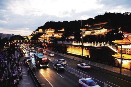 步入中山橋,才感覺(jué)回到了現(xiàn)實(shí)世界。一位小帥哥手拿話(huà)筒,自信地亮著歌喉,顯然是練膽逗樂(lè)的,人們駐足觀望。做生意的小販們推著小車(chē)擠到人群里,眼前晃動(dòng)著各種各樣的新奇玩意:發(fā)光的氣球,唱歌的玩具,毛羽的頭飾,彩色的涼帽。燒烤車(chē)上,烤土豆、烤年糕、烤魷魚(yú)、烤雞翅發(fā)出陣陣誘人的香味。
