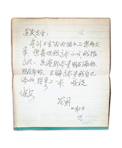 《生活時(shí)報(bào)》上的拙稿,是先在網(wǎng)上讀到,好幾天后才接到樣報(bào)的。正考慮著是否復(fù)印給先生(因怕給您添麻煩),便收到您的大札及三聯(lián)版的《我愛穆源》,喜不自勝。近幾天大暑,常常躺在席上翻讀《穆源》,很快又讀了一遍,雖似乎輕松但收益卻不少。我們最后留在生命記憶里的,不正是這些最純粹、率直的東西嗎?這也許正是它的價(jià)值,也許是人們復(fù)讀《穆源》的自然沖動。再次致謝!