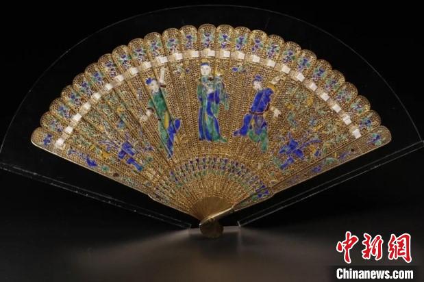 館藏的銀累絲鎏金燒藍(lán)戲曲人物故事圖折扇。廣東省博物館 供圖