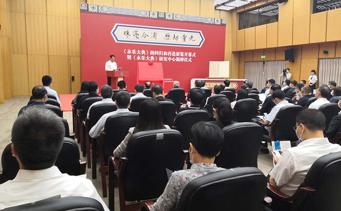 展覽開幕的同時,還舉辦了“國家圖書館《永樂大典》研究中心”成立揭牌儀式。該中心的成立旨在聯(lián)系組織國內外專家學者,對《永樂大典》進行更全面、更深入的研究,展示推廣其具有當代價值、世界意義的文化精髓。