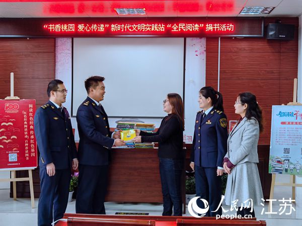 連云港航標處向墟溝街道桃園社區(qū)捐贈圖書。張晗攝
