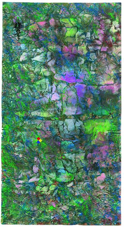 徐冬冬認(rèn)為,二十四節(jié)氣歷史悠久,可追至上古時(shí)代,蘊(yùn)含著對(duì)天地萬(wàn)物生命起源的哲學(xué)認(rèn)知。中國(guó)抽象繪畫(huà),畫(huà)的是生命本質(zhì)的生生滅滅。畫(huà)的是“空”,而不是“色”。他告訴記者,在創(chuàng)作這組畫(huà)時(shí),他會(huì)細(xì)致捕捉依次出現(xiàn)的時(shí)令、氣候、物候的變化,通過(guò)八識(shí)中的“眼、耳、鼻、舌、身、意”來(lái)感受大自然的氣息,然后用抽象的筆觸呈現(xiàn)在畫(huà)紙上。“我就像是一臺(tái)感應(yīng)器,每一個(gè)汗毛孔都在感受著天地的氣息。”徐冬冬說(shuō)。作畫(huà)的宣紙經(jīng)過(guò)特殊處理,也有了肌理和紋路,色彩濃烈的畫(huà)作仿佛有了生命,似乎在呼吸伸展。