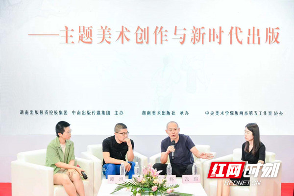 湖南省委宣傳部部務(wù)會成員、省政府新聞辦副主任于金旺,湖南美術(shù)出版社社長、總編輯黃嘯出席活動并致辭,中央美術(shù)學(xué)院教授、碩士生導(dǎo)師康劍飛,以及中央美術(shù)學(xué)院版畫系第五工作室主任武將等領(lǐng)銜的《少年毛澤東》創(chuàng)作團(tuán)隊(duì)帶來創(chuàng)作分享。