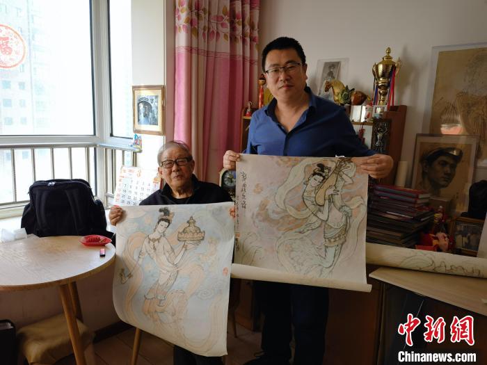 3月上旬,《絲路花雨·誕生》作者陳曉斌(右)拜訪今年86歲的舞美設(shè)計師李明強(qiáng)(右)老先生?!⊥跸让稀z