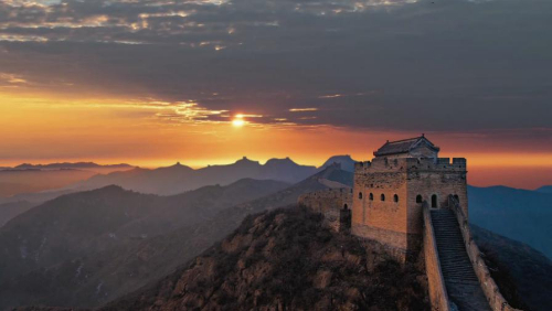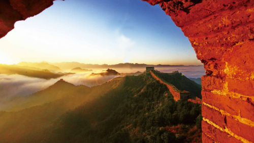 跨峻嶺,穿荒原,橫瀚海,經(jīng)絕壁,縱橫十萬里。望不斷長龍烽垛,雄關(guān)隘口,猶如玉帶明珠,點(diǎn)綴成江山錦繡。起伏奔騰,飛舞盤旋,長城就是中國人給這個世界增添的偉大奇跡。