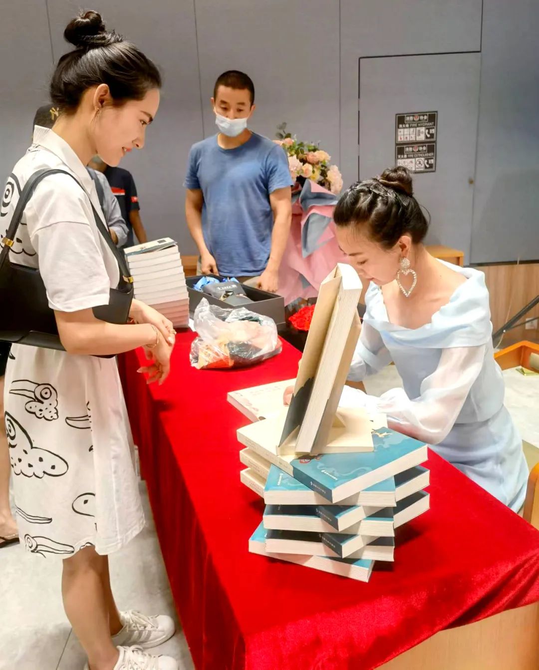 見面會還設(shè)計了互動環(huán)節(jié),主編李莉現(xiàn)場教學,五位敦煌舞愛好者認真模仿,作者還向參與互動的讀者贈送了本書。在簽售環(huán)節(jié)后,作者及參演人員和讀者合影留念。