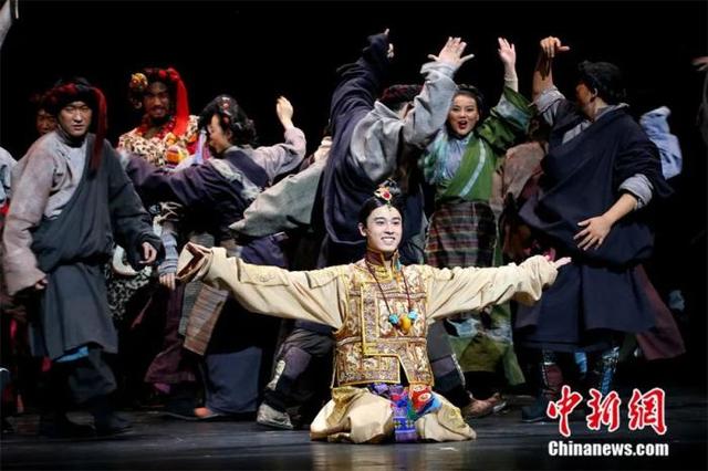 根據(jù)著名作家阿來30萬字的長(zhǎng)篇小說改編的大型話劇《塵埃落定》在北京天橋藝術(shù)中心演出。郭俊鋒 攝
