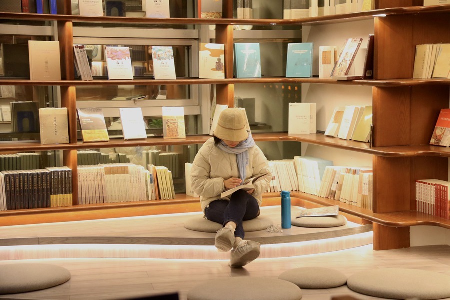 讀者在甘肅敦煌書局閱讀圖書。張曉亮攝