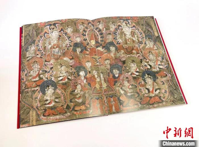 茹實說,該書含100余張高清圖版,對絹畫各部分如說法圖、經(jīng)變故事圖、經(jīng)變文、發(fā)愿文等采用分段展示細節(jié)的方法,每幅圖均配以詳實的文字說明。為便于讀者欣賞絹畫全貌,在扉頁處特別裝幀一幅絹畫高清大圖拉頁。