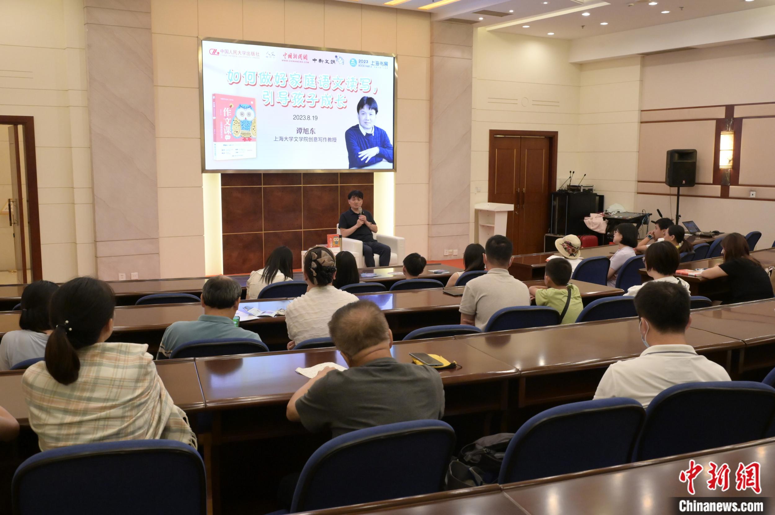 中新網(wǎng)8月22日電 8月19日晚,魯迅文學(xué)獎得主、上海大學(xué)文學(xué)院教授、博士生導(dǎo)師譚旭東攜新作《作文課:讓創(chuàng)意改變作文》,走進上海書展,暢談家庭語文教育。譚旭東以自己多年指導(dǎo)中小學(xué)語文教育的經(jīng)歷與大家分享:家庭語文讀寫的培養(yǎng),對孩子的成長和語文的進步,都非常關(guān)鍵。