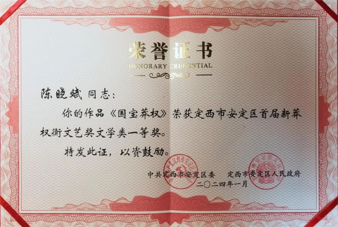 1月21日晚,由定西市安定區(qū)委、區(qū)政府主辦的首屆“新莽權(quán)衡文藝獎(jiǎng)”頒獎(jiǎng)晚會(huì)在隴中許鐵堂秦腔劇院隆重舉行。讀者出版社紀(jì)實(shí)文學(xué)作品《國寶莽權(quán)》榮獲文學(xué)類一等獎(jiǎng)。